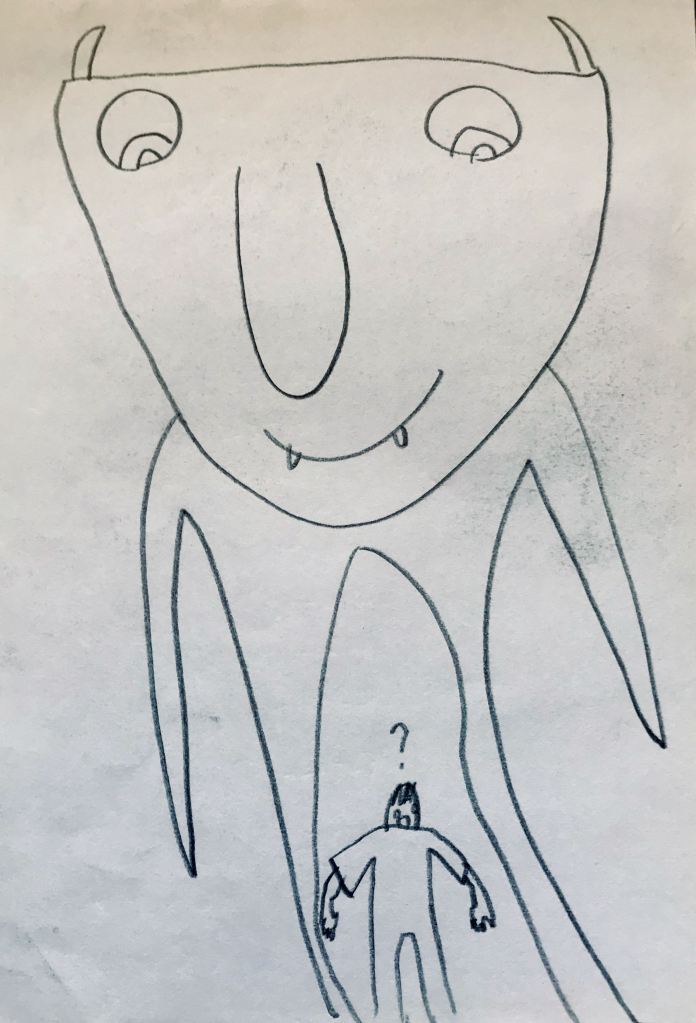 This ‘Kaiju Scale Study’ is one of Scott’s earlier attempts to apply his research of the Kaiju design principles to an animalistic figure. Scott wanted to have a better sense of the scale of a Kaiju creature in the context of a human like character of his own design. The resulting sketch is an interesting reminder that Kaiju are not inherently dangerous, in fact this particular creature though strange, is quite friendly looking. This sketch uses drawing pencils on cartridge paper.