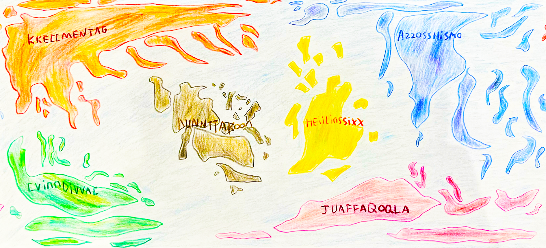 In the initial sketches not much has been done to highlight Scott’s work. Some light colour boosting was required to make the work stand out, but in the featured image the names for each of the continents has also been included digitally to make the names just a little clearer.