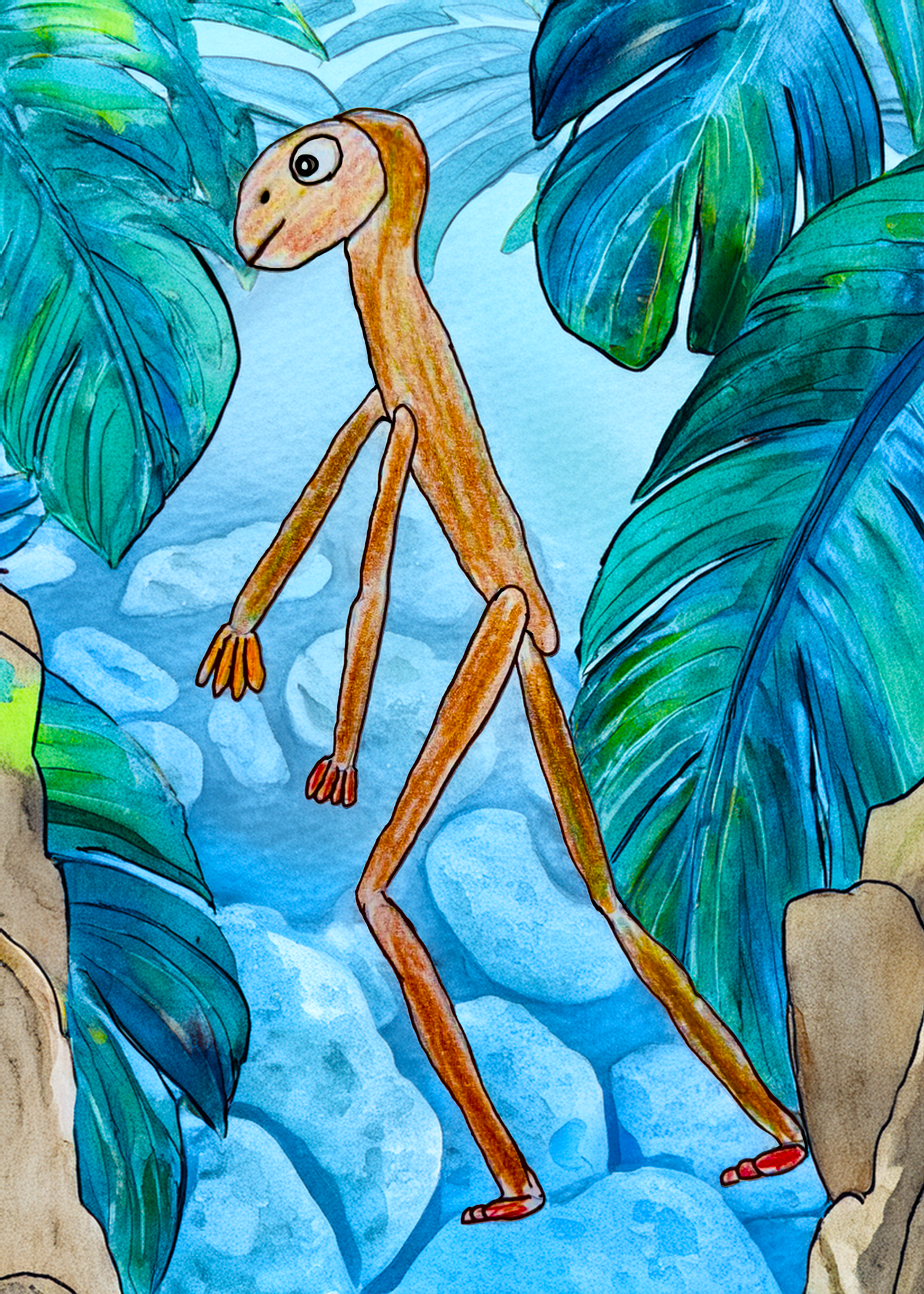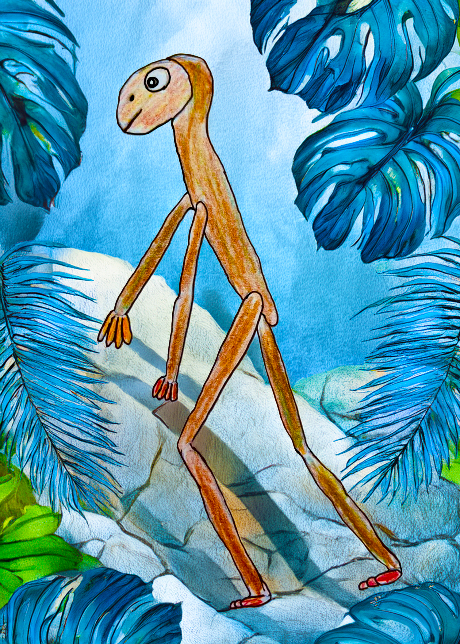 ‘Oreoato’ is a character development sketch of a creature designed for one of Scott’s current projects the ‘IALFEC‘ universe. Oreoato is a humanoid character who may get to appear in some of Scott’s planned animated stories, but for now Oreoato has been placed in an alien desert like environment to get a sense of what kinds of places we might find this character.