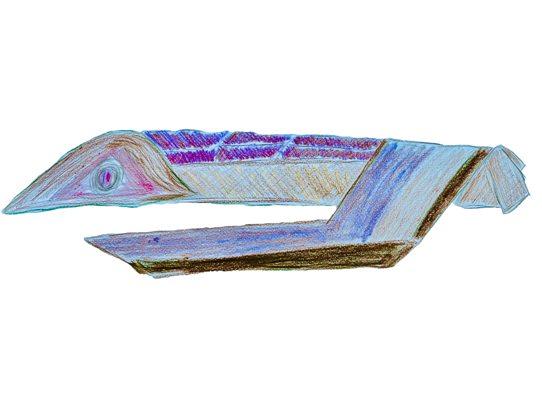 The original image of the Zleall was hand-drawn using coloured pencil on cartridge paper.