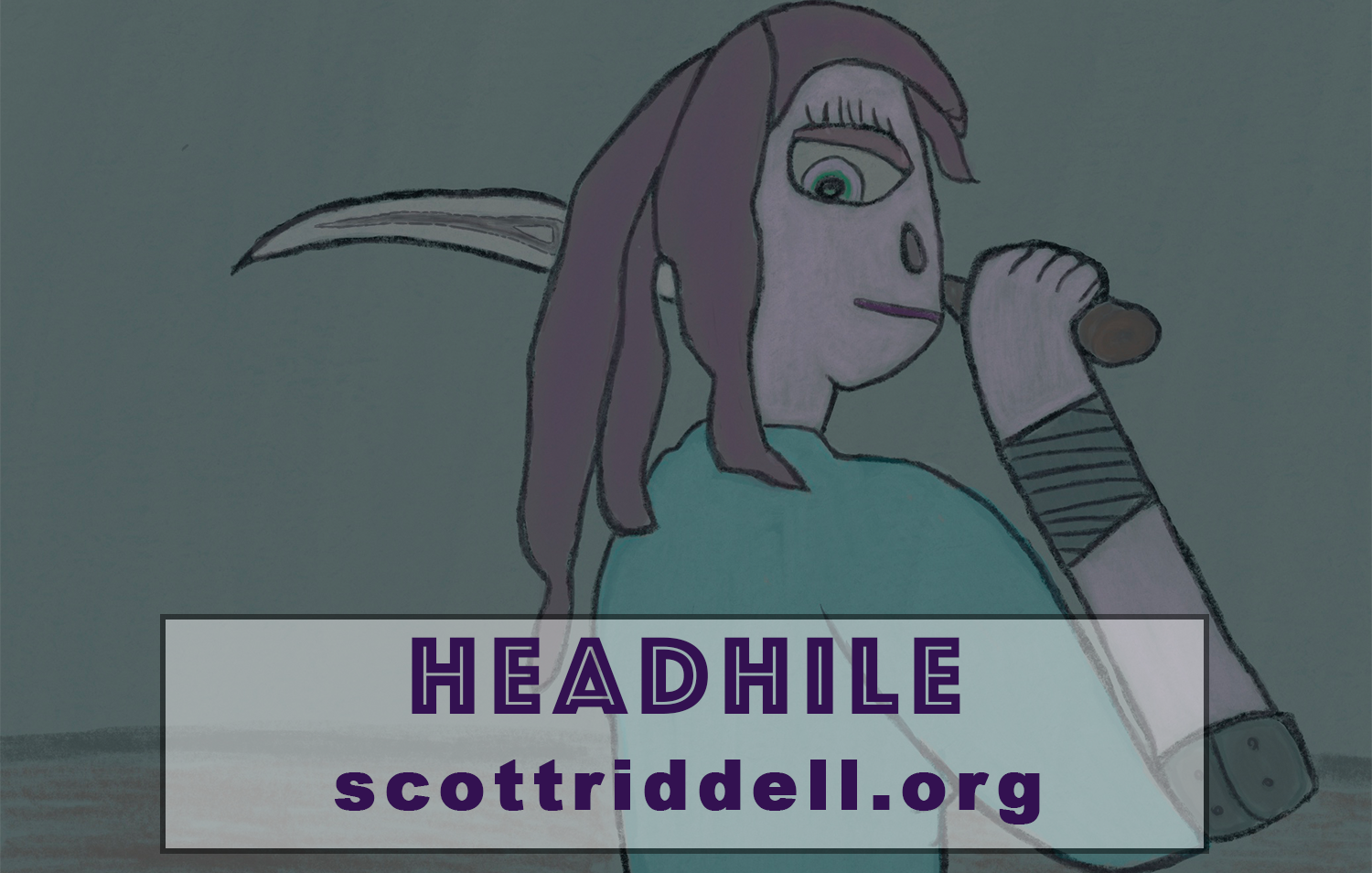 ‘Headhile’ is a creature Scott developed quite recently. Scott’s inspiration for this creature was to create a female warrior character that showed that women can be as strong, or stronger than men. This character is much closer to human than most of the creatures Scott enjoys designing, but he had a lot of fun deciding what kind of personality the Headhile would have, and he did a great job capturing her strength and personality in his design.